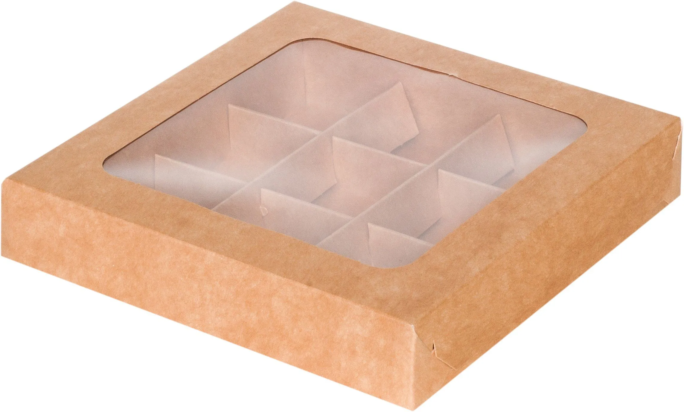 Коробка бумажная для конфет крафт с окном. Используют для упаковки и транспортировки конфет при доставке.