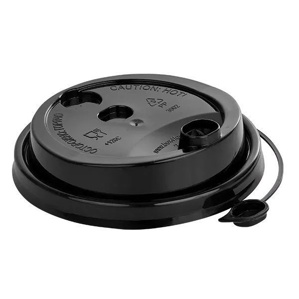 Черная крышка с заглушкой является функциональным и удобным аксессуаром для потребления напитков.