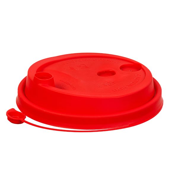 Красная крышка с заглушкой является функциональным и удобным аксессуаром для потребления напитков.