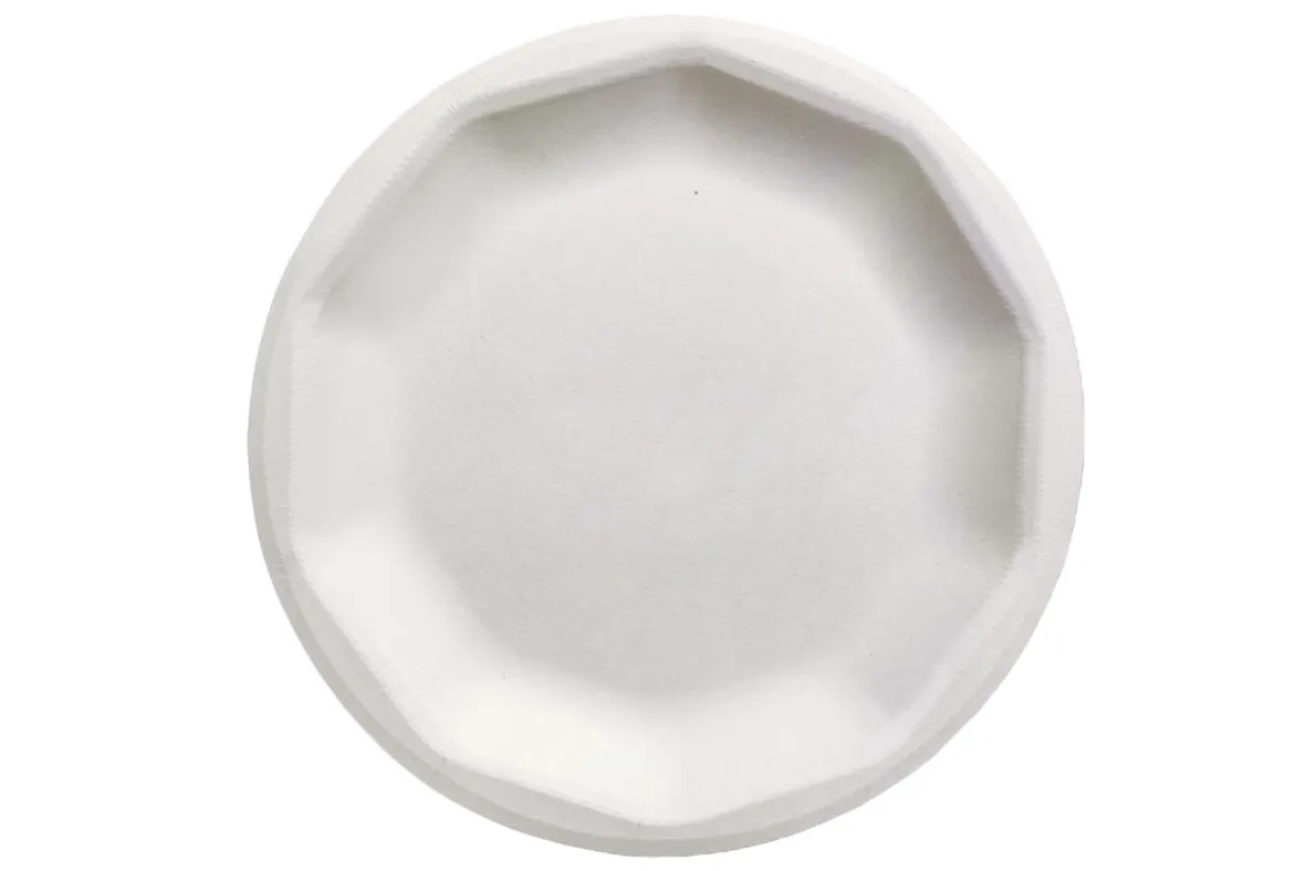 Полностью состоит из багассы – спрессованных остатков стеблей сахарного тростника. Это натуральное сырье для изготовления эко посуды. В процессе производства используются только механические и термические процессы, никаких химических красок или отбеливателей. Характерное отличие тростниковых тарелок от бумажных – легкий узор с внешней стороны. При этом внутренняя поверхность гладкая.