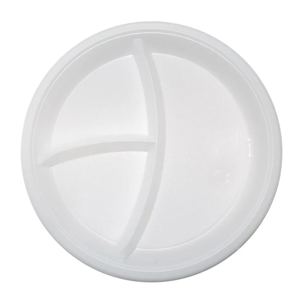Одноразовые тарелки изготовлены из высококачественного пластика. Материал экологически безопасен, не выделяет токсических веществ при взаимодействии с горячей пищей.  Предназначены для сервировки горячих и холодных блюд порциями