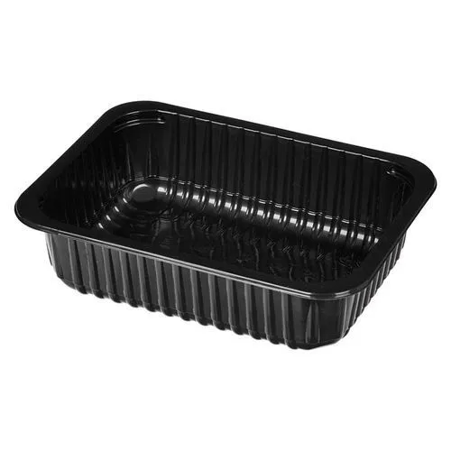 Используется как под запайку, так и под крышку  для фасовки мясных и рыбных полуфабрикатов, готовых блюд, салатов, деликатесов. Можно разогревать в СВЧ-печи.Размер 210х148х55 мм