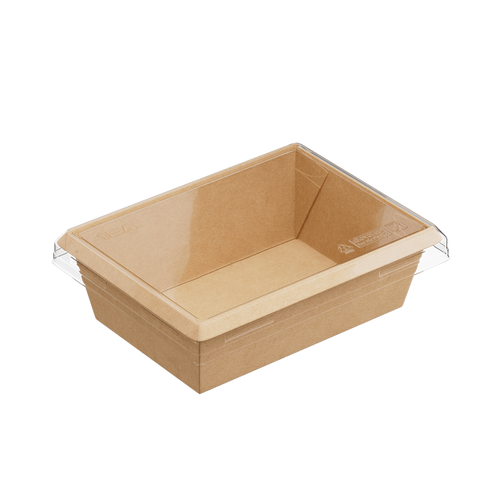Изготовлен из прочного экологичного картона, имеет сформированный жёсткий борт (без сборки), защёлкивается в один клик без протеканий, устойчив к конденсату, с высокой барьерностью (не прожиривается), разогревается в СВЧ без крышки, произведен без клея и перерабатывается на 100%.