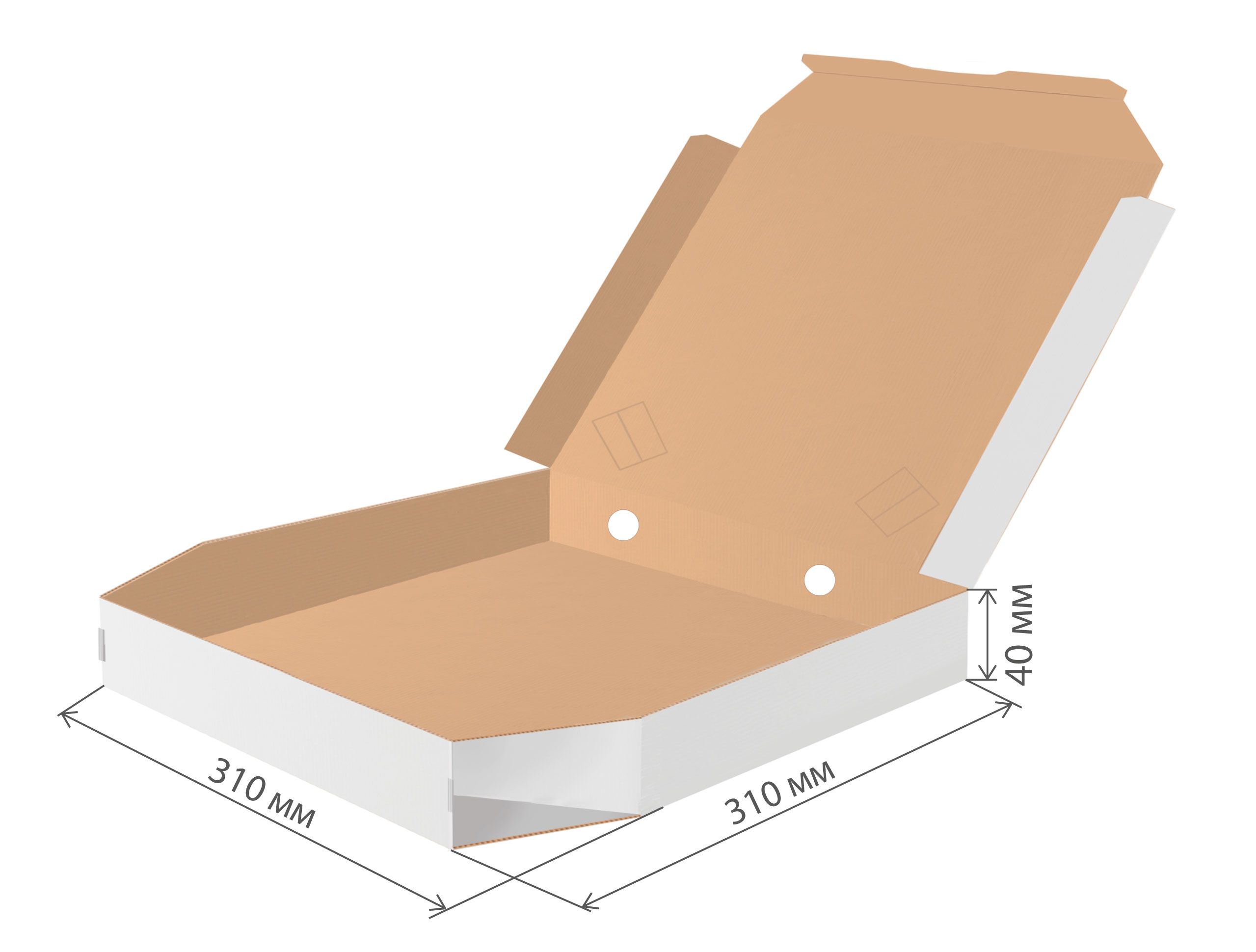 коробка под пиццу микрогофрокартон 310х310х40 скошенные углы бел/бур *