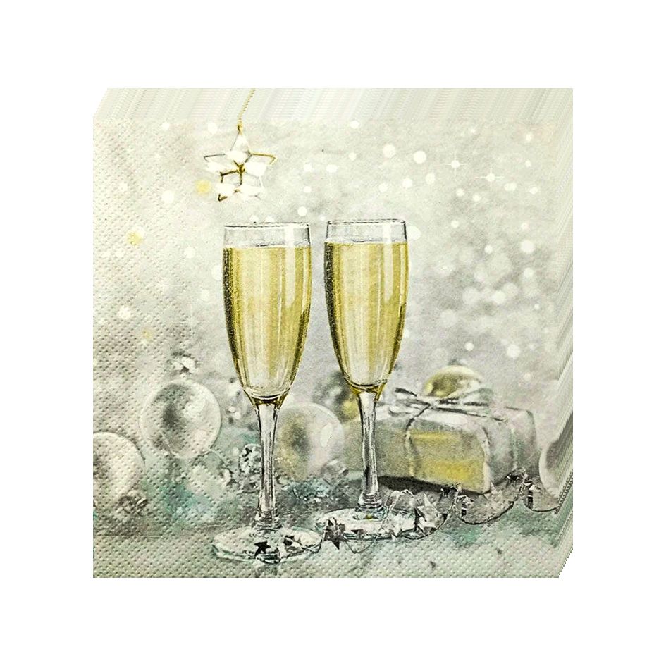 НГ салфетки 3-сл 33х33 Брызги шампанского/20