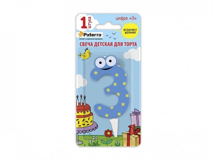 свечи д/торта  Цифры детские "3"  PATERRA