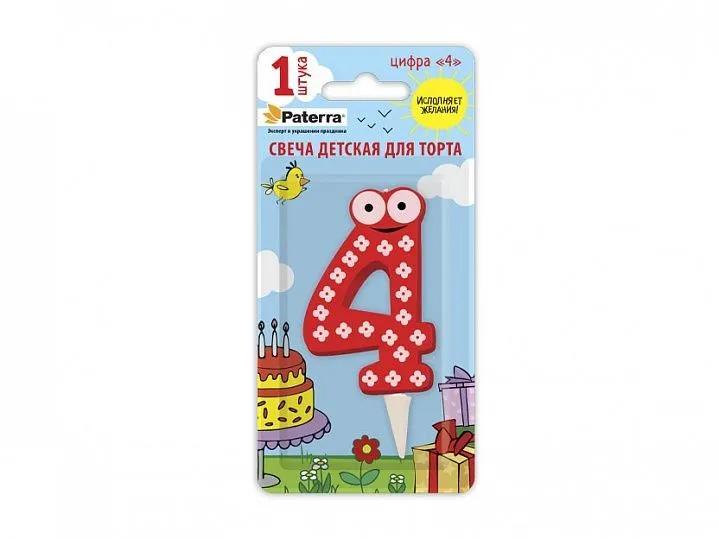 свечи д/торта  Цифры детские "4"  PATERRA