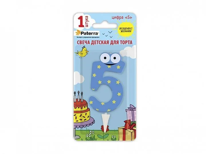 свечи д/торта  Цифры детские "5"  PATERRA