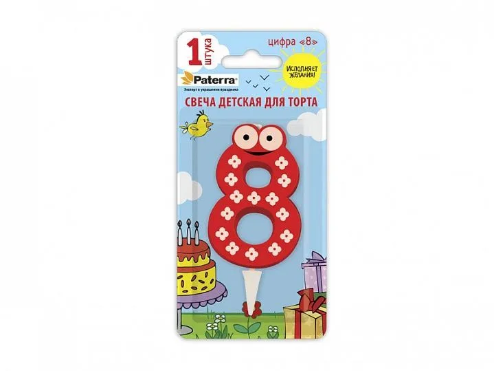 свечи д/торта  Цифры детские "8"  PATERRA