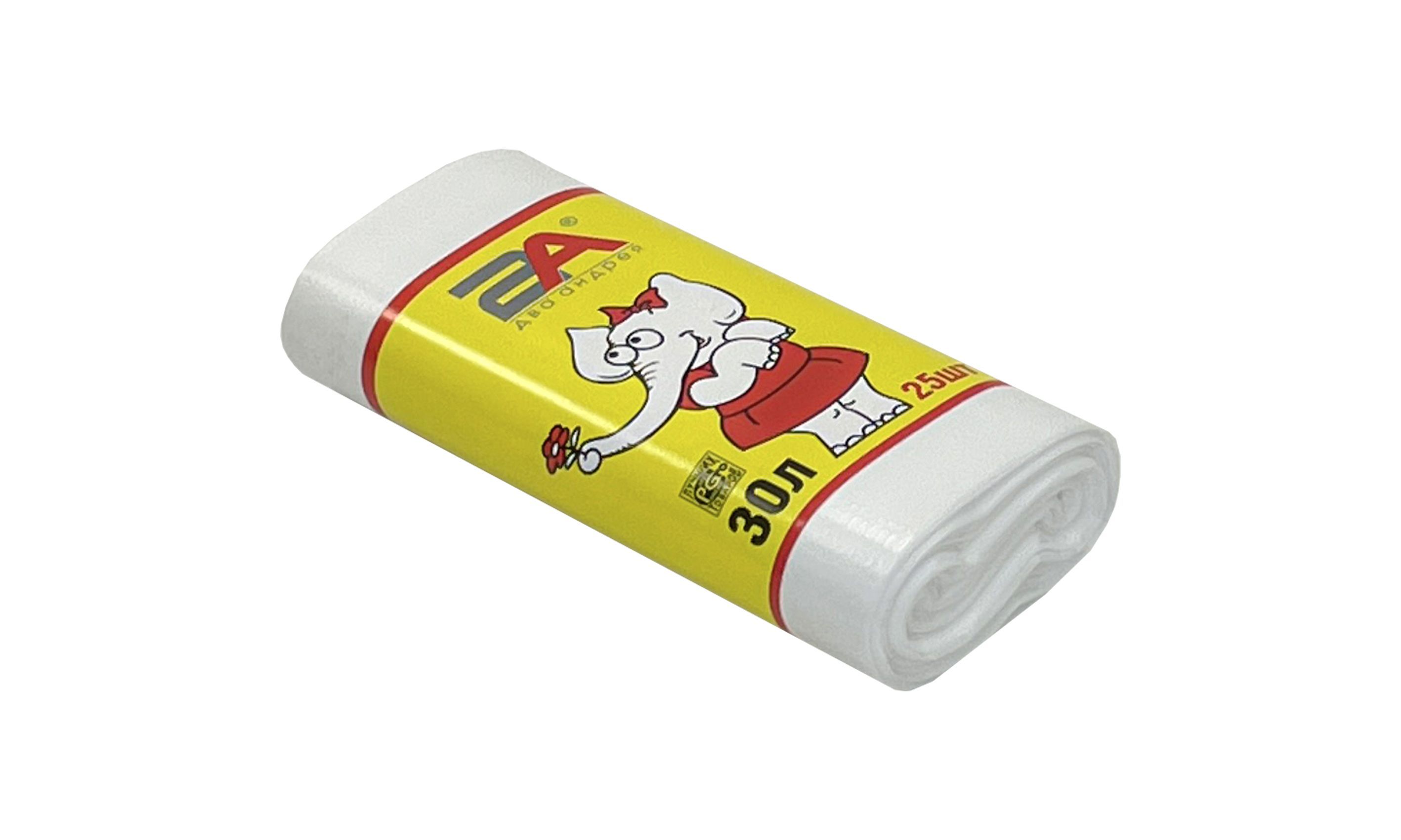 пакеты д/мусора 30л 25шт "Слоны в рулоне" 2А белые